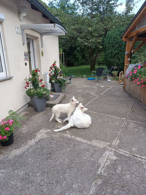 Acht Welpen den Aron, den Akira, den Akiro, die Alba, die Aika, die Amy, die Aurora, und die Asta haben wir an sehr gute Plätze vergeben, das war uns wichtig. Die Amira unsere Erstgeborene haben ich selbst behalten.